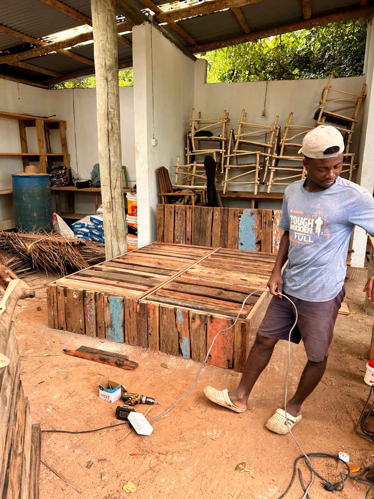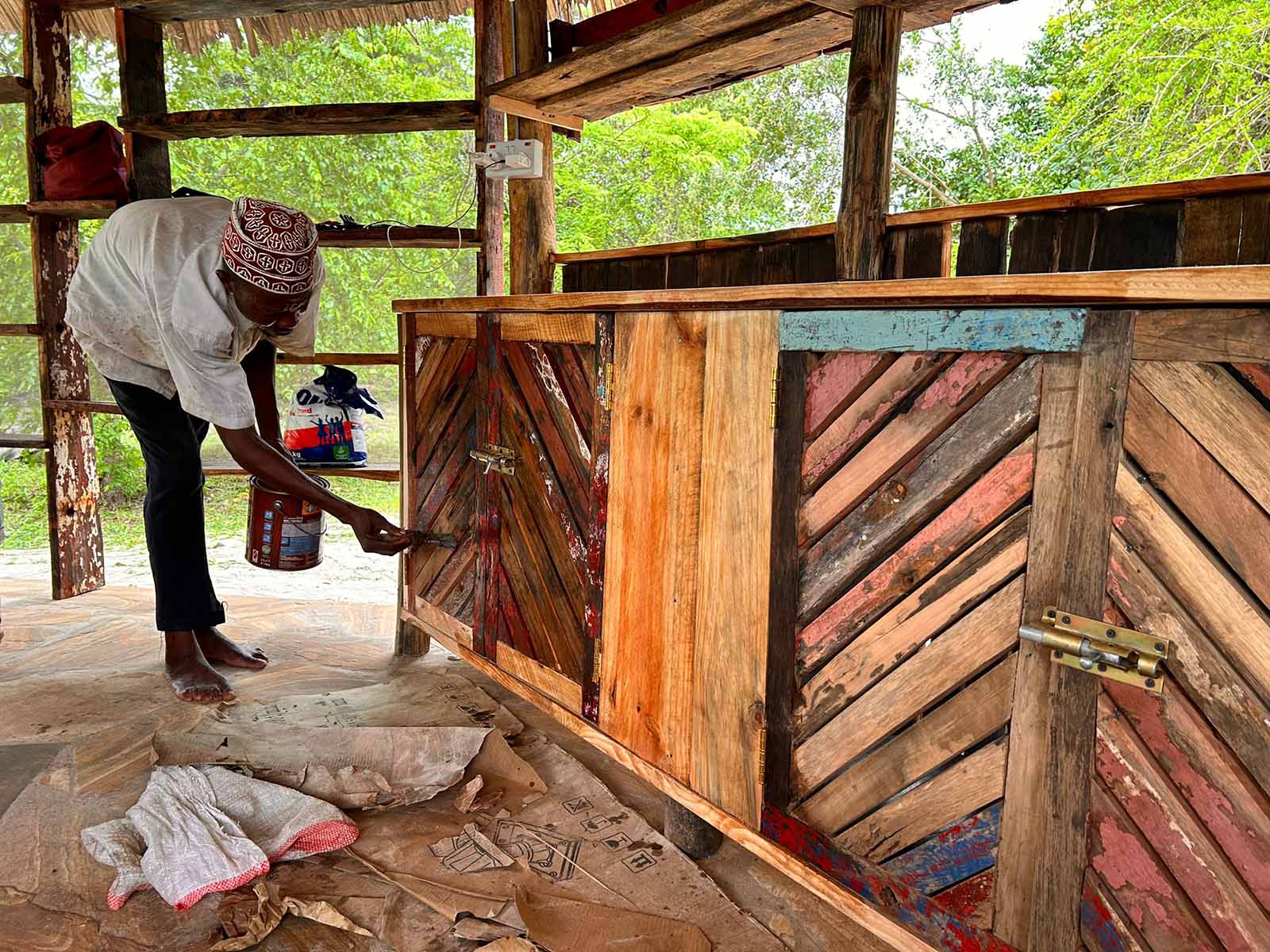 Children learn best when they play, explore, and create. To support this, we’re transforming reclaimed wood from old dhow boats into swings and playground structures, giving new life to forgotten materials.